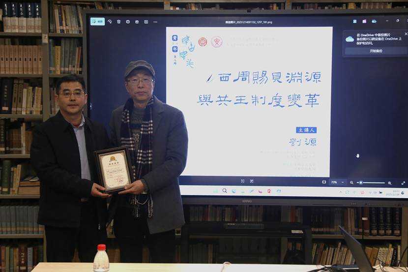 講座結束後,中心劉釗教授、陳劍教授、謝明文研究員等中心師生就西周制度變革、殷周兩代賜貝制度的變化及部分金文材料中的文字釋讀問題與劉源先生展開討論,劉源先生也回答了聽眾提出的若干問題。最後,主持人劉釗教授對講座內容進行總結,並代表中心向劉源先生頒發了講座證書。