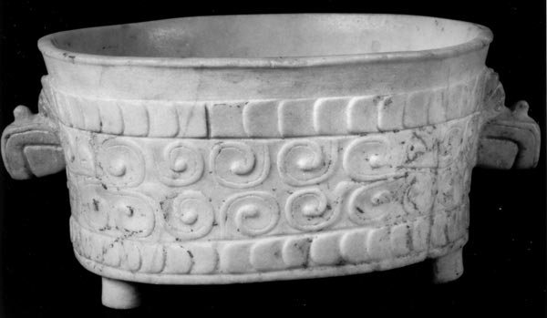 兽头仿自商周青铜器,中间填的花纹在东周玉器上比较常见。