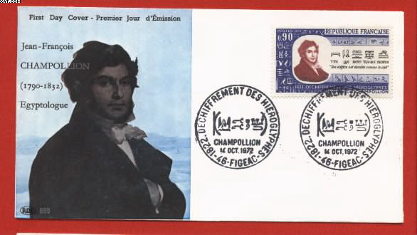 法国1972法国学者让·弗朗索瓦·商博良(1790-1832,他是法国著名的埃及 学家,通过研究罗塞塔石碑铭文,他于1821年破译了古埃及象形文字。