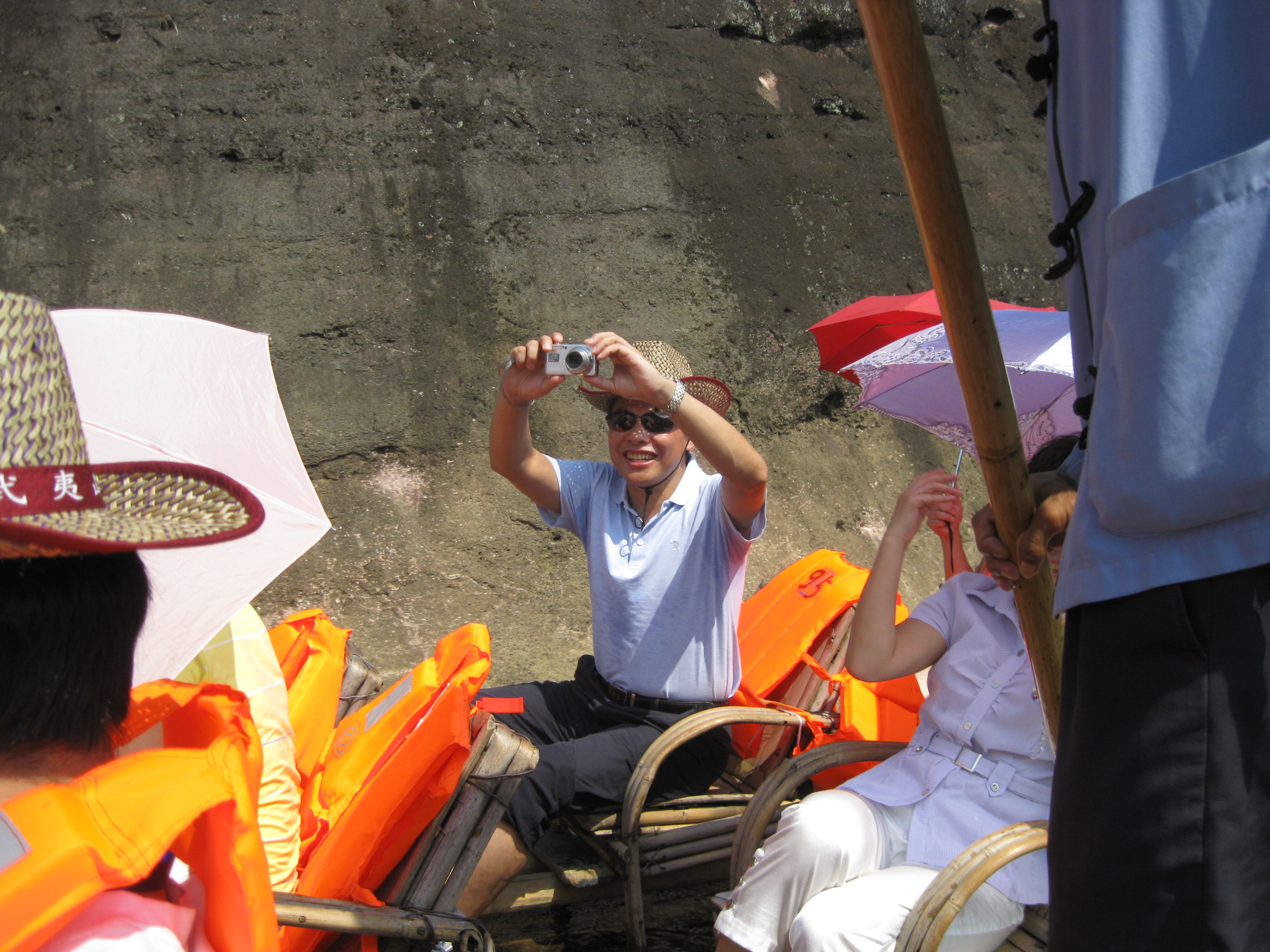 倒数第二张头戴竹帽、眼戴墨镜、手戴金表、高举相机、高卷裤管、微微含笑、气宇轩昂而未着救身衣者为何人啊?挺眼熟,但又想不起哪里见过!