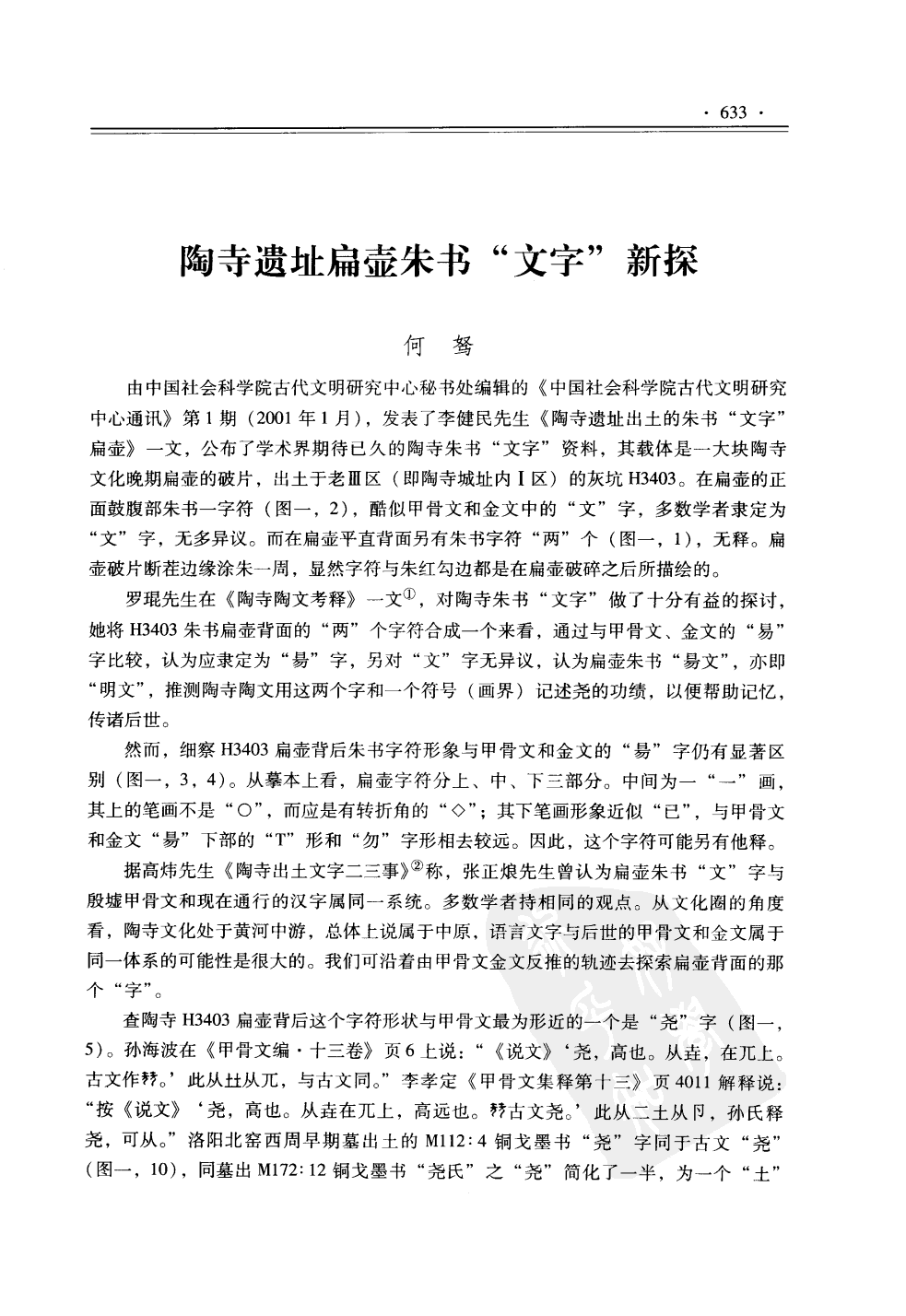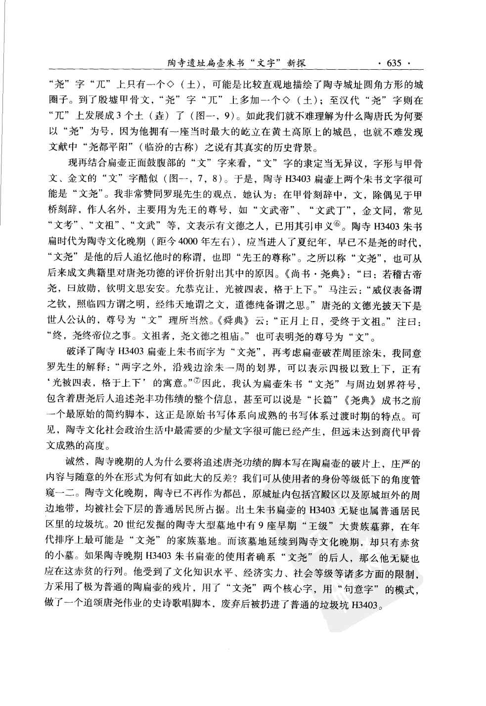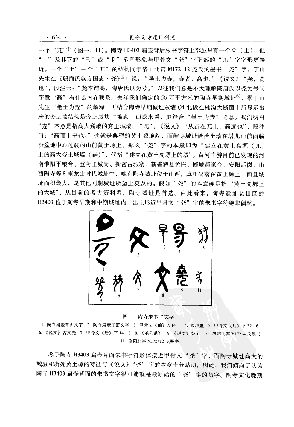 中国社会科学院历史研究所罗琨著《陶寺陶文考释》,认定陶扁壶朱书文字为:文 昜。