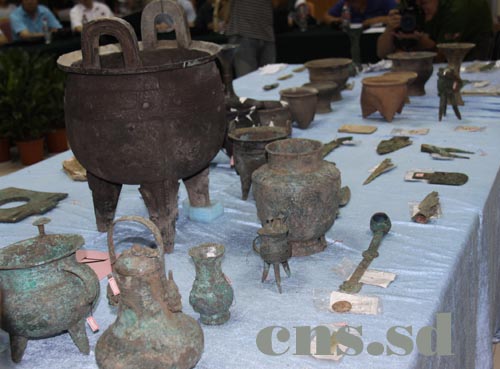 另外,本次在大辛庄遗址发现的青铜器,表面均无铭文,考古队领队方辉教授介绍,当时在铜器上镌刻铭文的方式尚未出现。