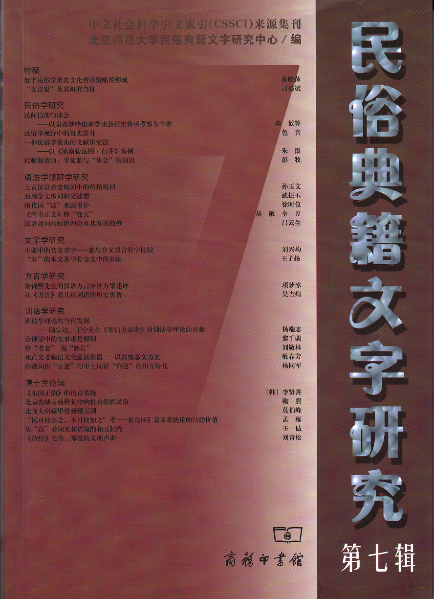 武振玉:殷周金文虛詞研究述要劉興均:小篆中的音義型字——兼與音義型古壯字比較王子揚:“束”的本義及甲骨金文中的束族莫伯峰:北師大所藏甲骨新綴五則