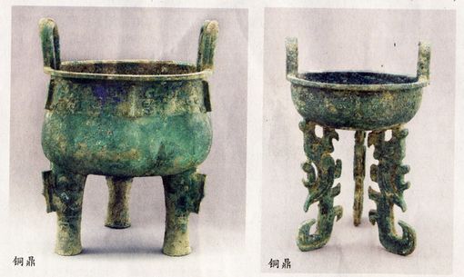 据李丰《黄河流域西周墓葬出土青铜礼器的分期与年代》(载《考古学报》1988年第4期。以下简称《黄河铜礼器》)研究:成、康时期的器物组合形式是鼎、簋、、尊、卣、爵、觯。包括一套食器、一套盛酒器和一套饮酒器。食器中鼎、簋之数往往相同,或三鼎三簋,或二鼎二簋。某些规格较高的墓中,鼎、簋往往有几套。白草坡M1出方鼎2件、分裆鼎2件及圆鼎3件;竹园沟M4出方鼎2件、不同型式的圆鼎3件。两墓都有三套鼎,一套方鼎和二套圆鼎。尊、卣相配,往往同铭,有一尊一卣和一尊配同形二卣两种形式。昭王前后的组合形式是鼎、簋、鬲、尊、卣、爵、觯。鬲在铜器群中常见。爵、觯的组合渐趋减少。穆王前后的组合为鼎、簋、、鬲、尊、卣、壶、爵、觯、盘、。包括食器、酒器、水器三部分。盘、这套水器的固定出现是这一时期的突出特点。壶的普遍出现具有断代意义。成列的鼎、簋相配已开始出现。爵、觯的组合已基本消亡,只是作为复合组合中的一个部分仍有存在。两件同形的爵与觯相配是常见的形式。尊、卣相配仍有一尊一卣和一尊二卣两种形式。