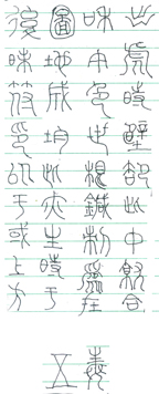 感觉是用小篆胡乱拼凑起来的文字,不成文句,也读不通,自然无意义可讲。