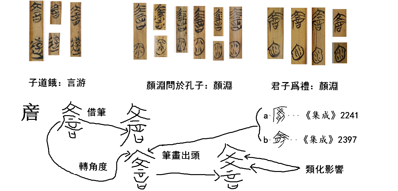 某校讀記的前言的一個注說,根據上博簡,言遊之“言”與顏回之“顏”無別,所以儒家八派中的“顏氏之儒”,“也可能是言游的學派”。