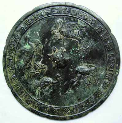 关于公布材料的问题,我之前的回帖已说明:我们是在《收藏界》2011年第3期刊登的《安徽怀宁县文物管理所藏铜镜浅析》一文中见到的这面铜镜。后来又找到《考古》的相关资料,所以暂时只能公布这些资料。此镜非我藏品,我不明白还有哪些属于这两张图片的信息我没有公布。