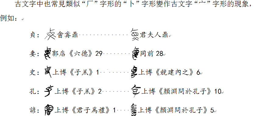 此為拙文《釋肙》原稿中的一部分,講的是與“宀”字形變作“卜”字形相反的形體現象,後來嫌啰嗦,就刪去了。