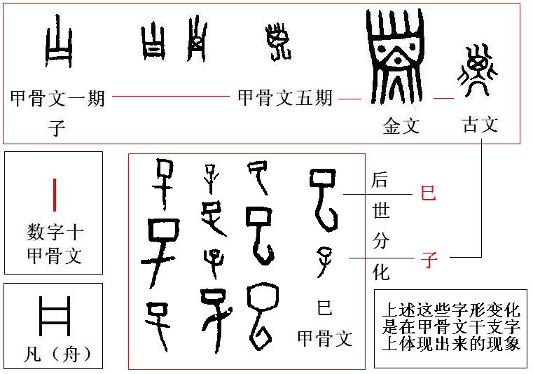 而甲骨文“子”字形也是同样的道理,只是后世的人们离本源越来越远而逐渐所做的解释性改造,导致其字形越来越繁复而趋于具象化。由此还导致更进一步的混乱局面,以至于我们现在都无法说清楚“子”的本义到底应该如何来解释。