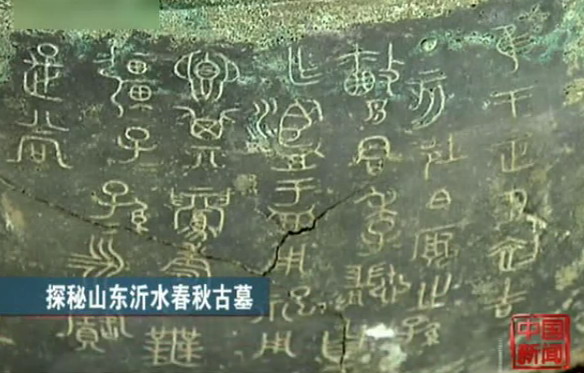 下面是“在水一方”網友在名為“山东鲁中发现春秋时期诸侯级别古墓”的帖子的跟帖中,貼出的他在央視網上抓取的山東沂水春秋古墓出土青銅器銘文的圖片: