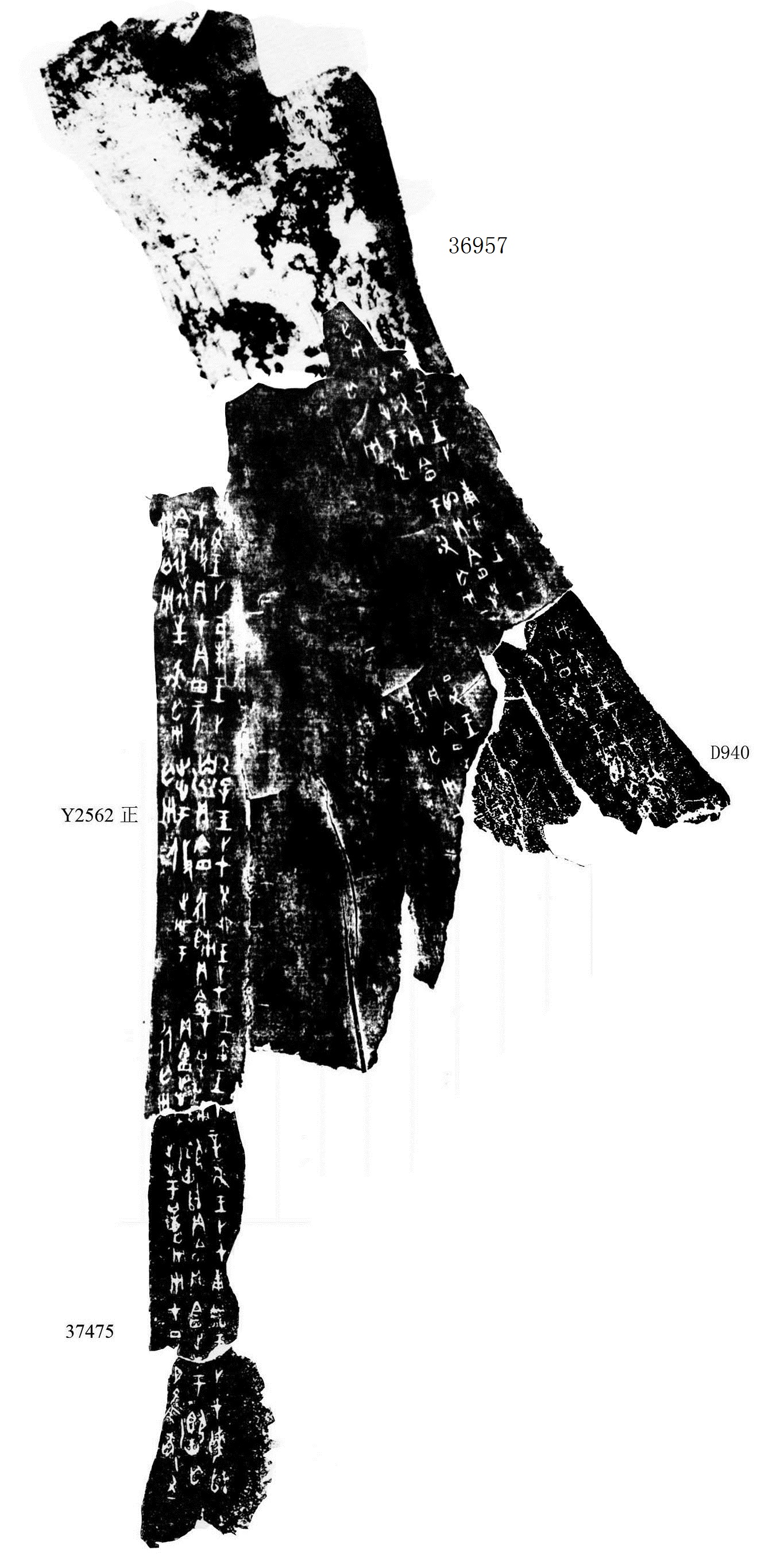 《合集》36957似採用的照片,很模糊,其辭例看不清楚。近從37475 Y2562正+D940+36957的綴合圖版來看,《合集釋文》《校釋總集》對36957之釋文可能有誤,但因手裏沒有清晰圖片,難以確認。《來源表》表明本片源自《柏俗》8,不知哪位師友可有更清晰的圖片,供我一閱。李發在此謝過!!!