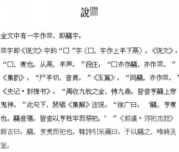 裴骃《集解》注说:“徐广曰:‘亨,煮也。鬺音殤。皆尝以亨牲牢而祭祀。’”