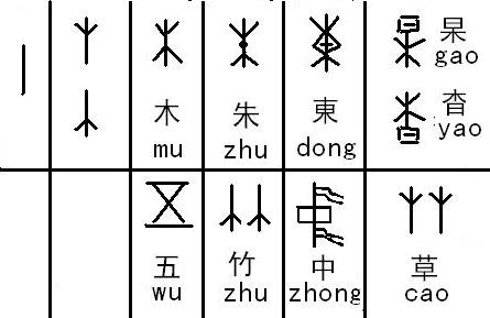我們先看獨體“木”字,其為一樹干,二根,二枝組成而表示生長著的植物總名。(數五)