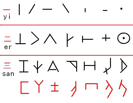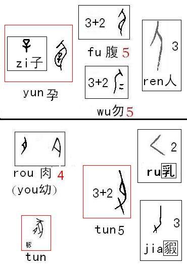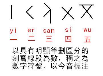 甲骨文獨體字形,是由數字符號的相互結合,調整變化而來。其字音來源也是數字音相互孳乳而近同。