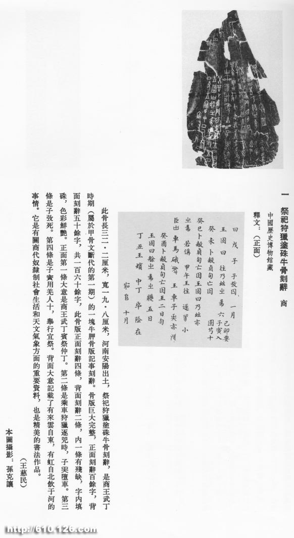 祭祀狩猎涂朱牛骨正面释文