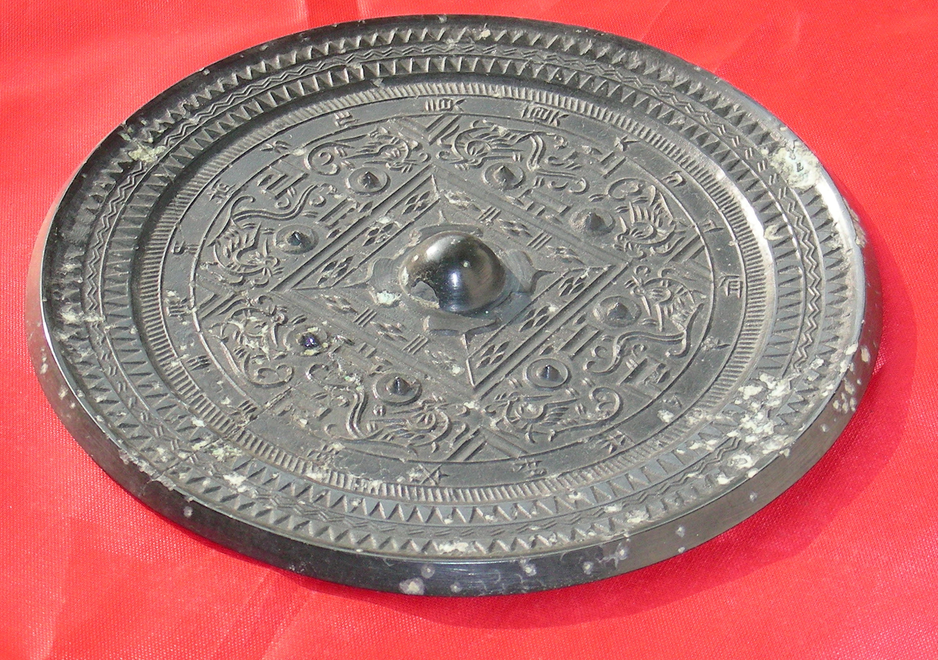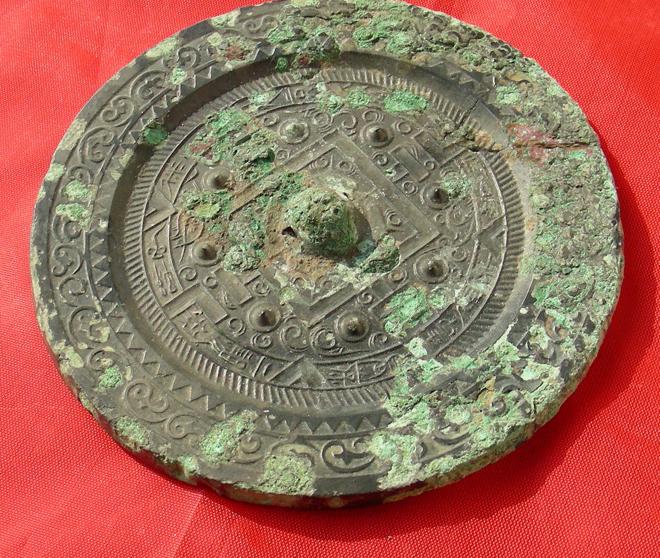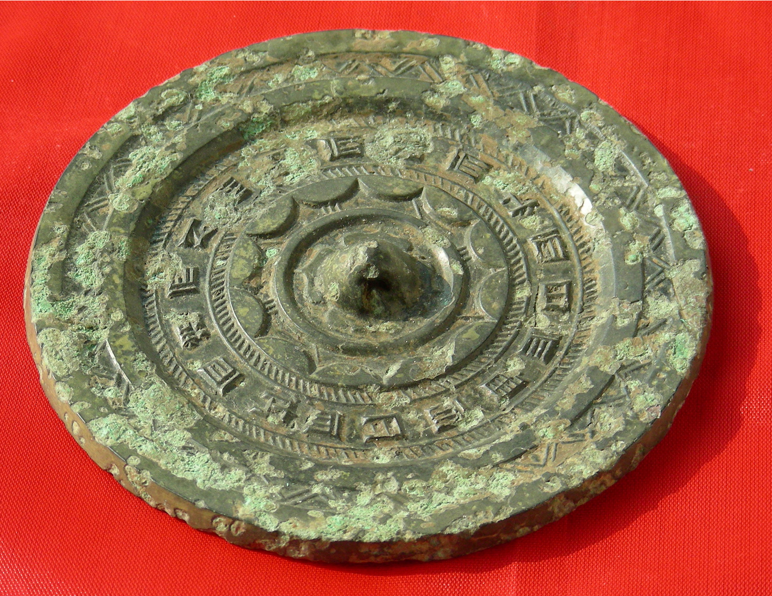 我给朋友们贴几个真家伙,那是我们考古发掘出土的。先贴3个,上面都有铭文,看看新莽前后的文字风格,与一楼那面镜上的文字风格比一下。我贴的那面《枣言》镜(十九楼图)与一楼的那面镜是一种型式的镜。